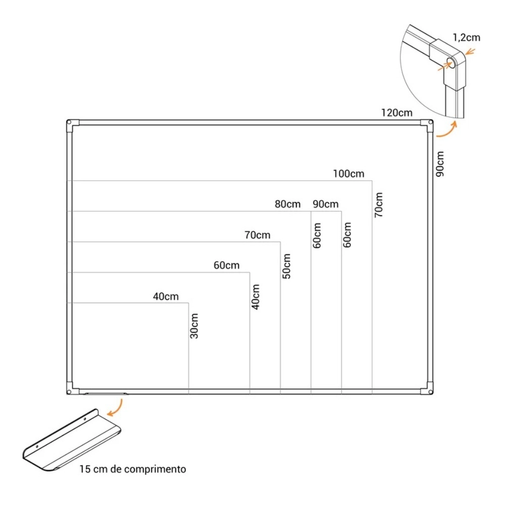 Superfície de Escrita: Chapa de fibra de madeira (MDF) com pintura UV branca de alto desempenho.